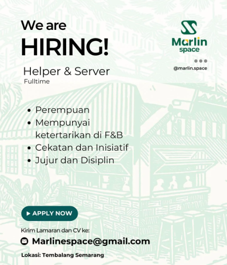 - Syarat: Ramah, komunikatif, dan mampu bekerja dalam tim.
