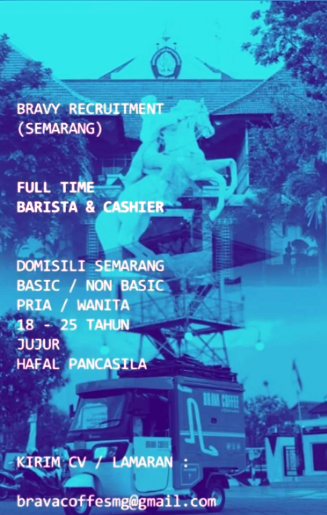 tags : Loker Barista Semarang, Lowongan Kerja Barista Semarang, Loker Semarang Terbaru, loker F&B Semarang, loker cafe Semarang, loker waitress Semarang, loker chef Semarang, loker restoran Semarang, lowongan barista pemula Semarang, gaji barista di Semarang, loker koki Semarang, lowongan kerja di cafe Semarang, loker crew cafe Semarang, Loker Barista Semarang non pengalaman, Lowongan kerja Part Time Barista Semarang, Loker Part Time Semarang